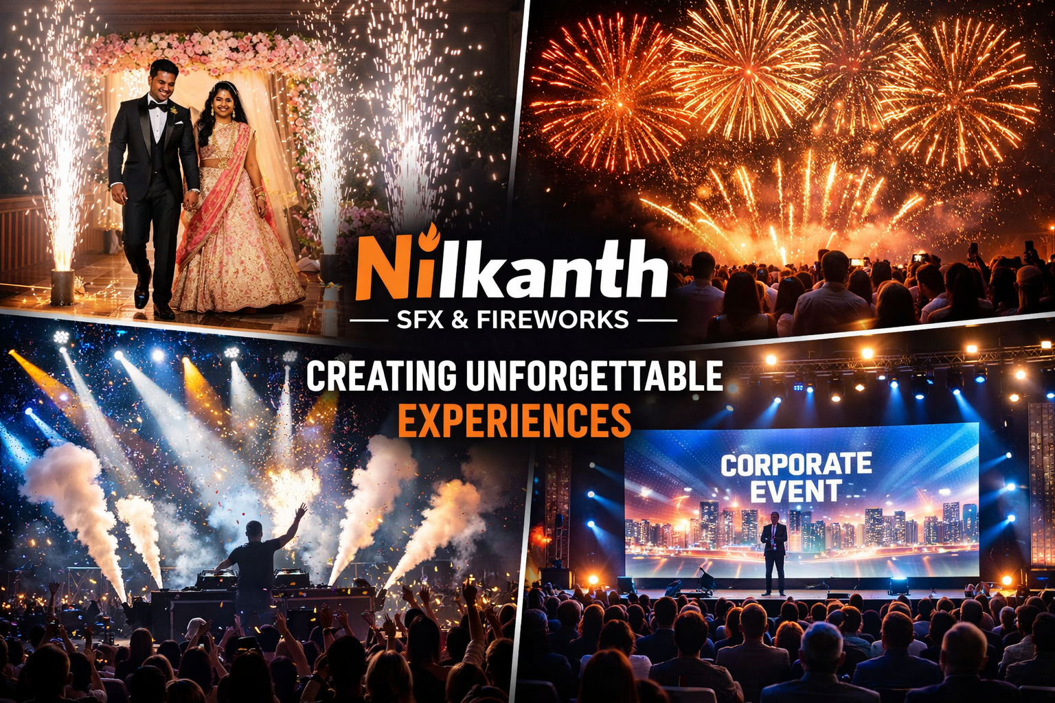 At Nilkanth SFX & Fireworks, we specialize in delivering professional SFX effects, fireworks displays, LED visuals, and lighting setups that turn ordinary events into extraordinary moments.